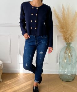 Gilet Long Bleu Marine Femme